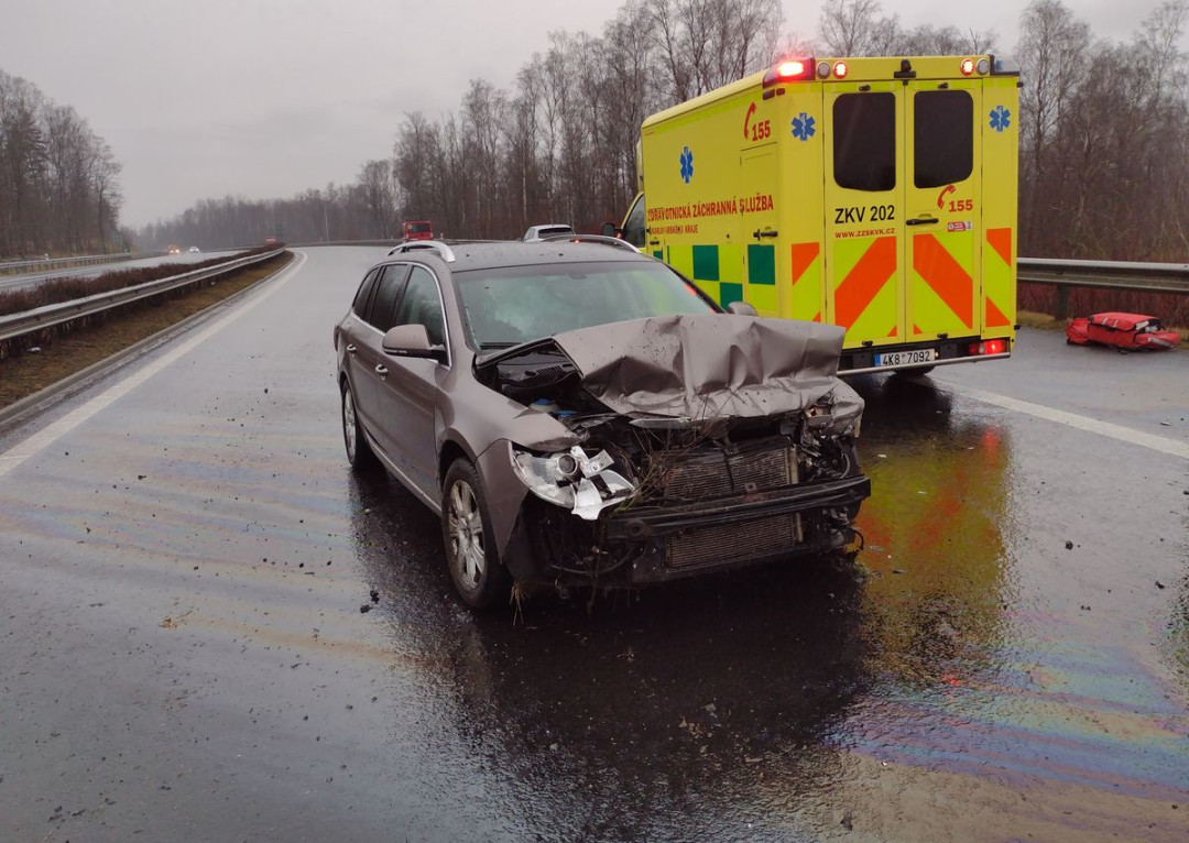 Tři automobily havarovaly na mokré vozovce u Nového Sedla. V péči záchranářů skončili tři lidé