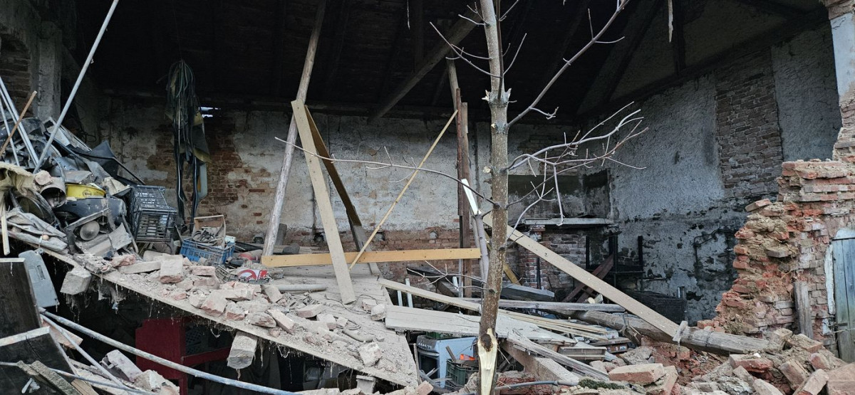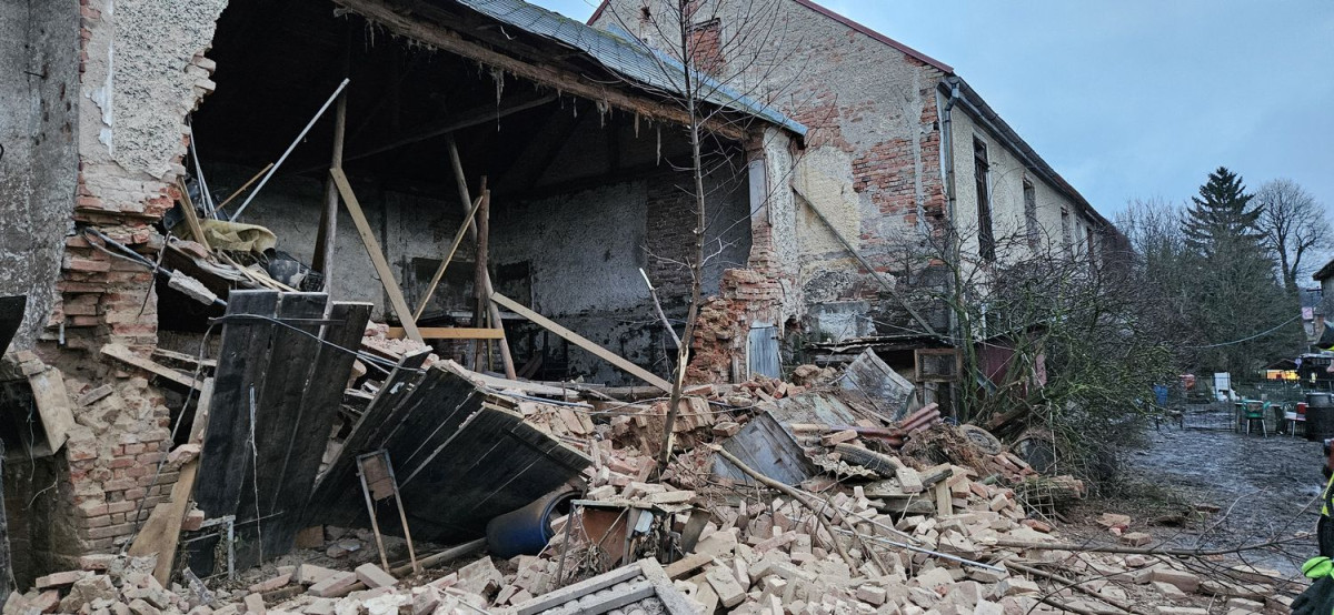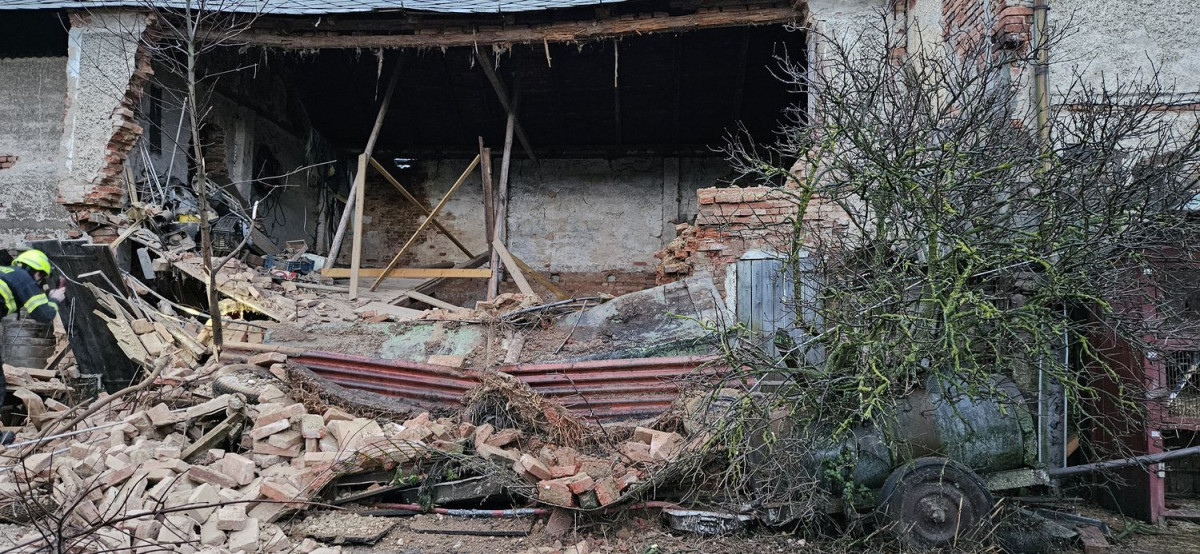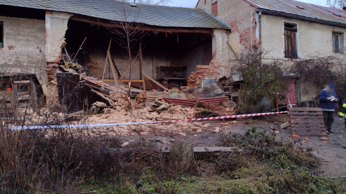V Těšeticích u Bochova se zřítila boční stěna hospodářského stavení