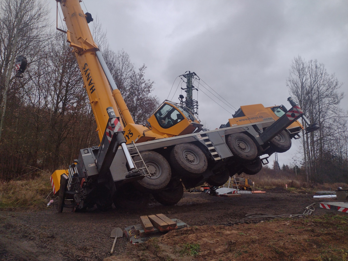 V Radošově se převrátil autojeřáb, poškodil vedení a způsobil výpadek elektřiny