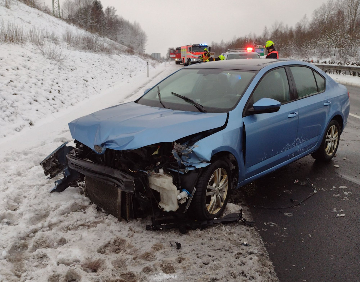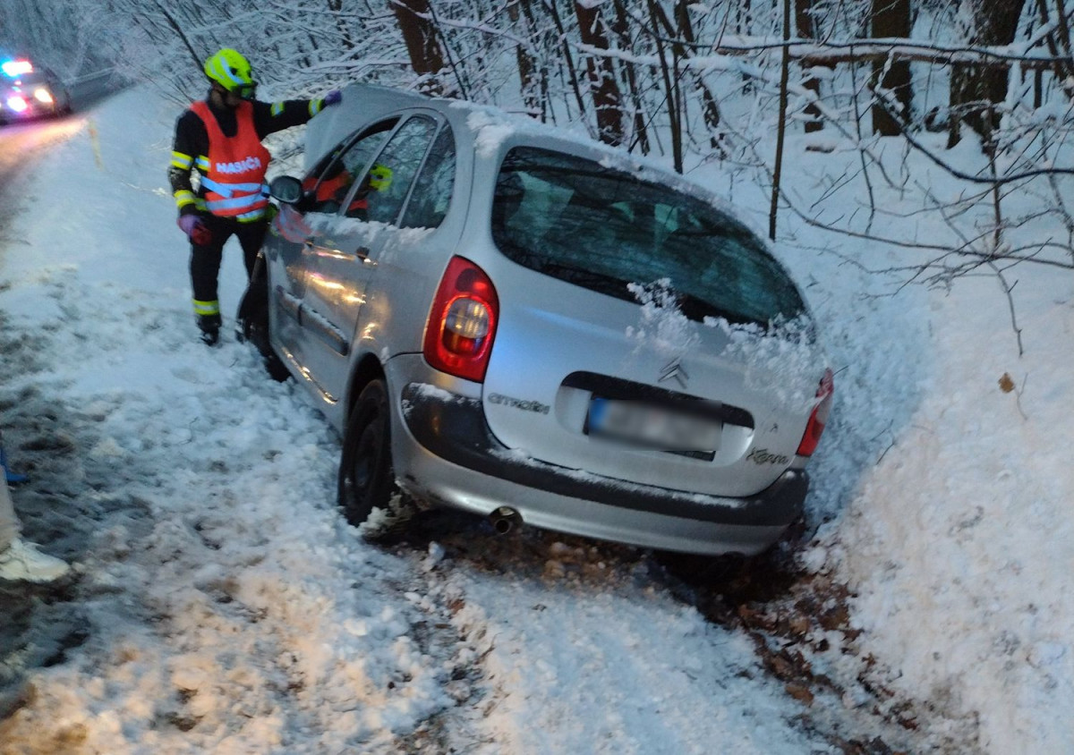 FOTO: Počasí komplikuje provoz. U Šemnice na Karlovarsku zemřel po nehodě řidič auta