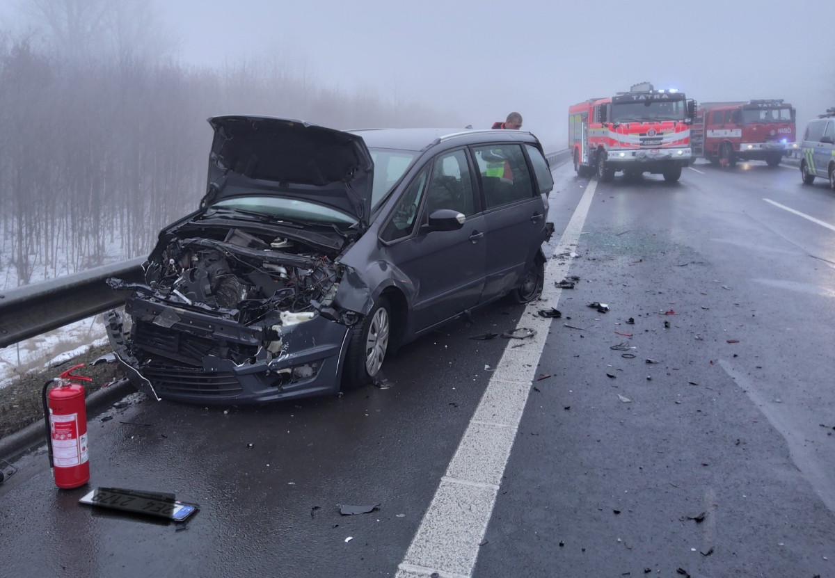Komplikace na dálnici: Provoz na D6 zcela uzavřela nehoda tři aut. Foto: Se svolením HZS Karlovarského kraje