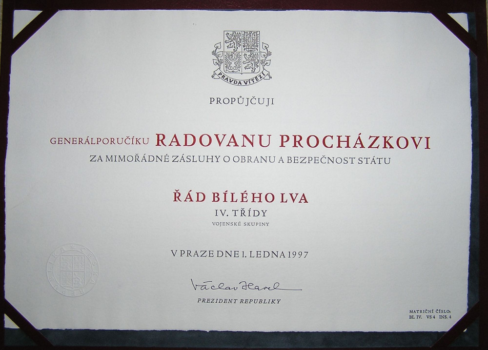 V roce 1997 obdržel od prezedenta Václava Havla Řád bílého lva IV. třídy