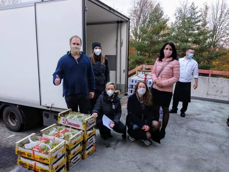 Dobrovolníci přijeli poděkovat karlovarským zdravotníkům, přivezli ovoce, jogurt, kávu a dopis