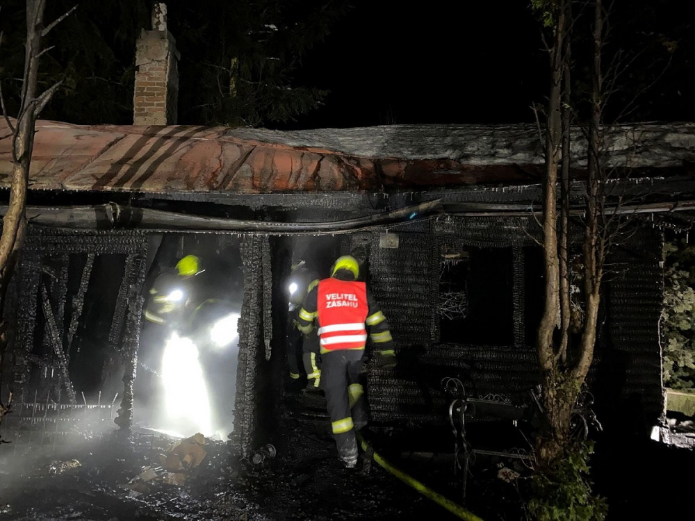 Silný mráz komplikoval hasičům zásah u požáru v chatové oblasti