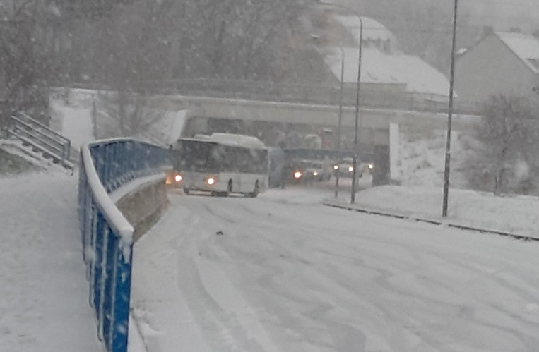 Dopravu v kraji komplikuje husté sněžení, někde se stojí v kolonách