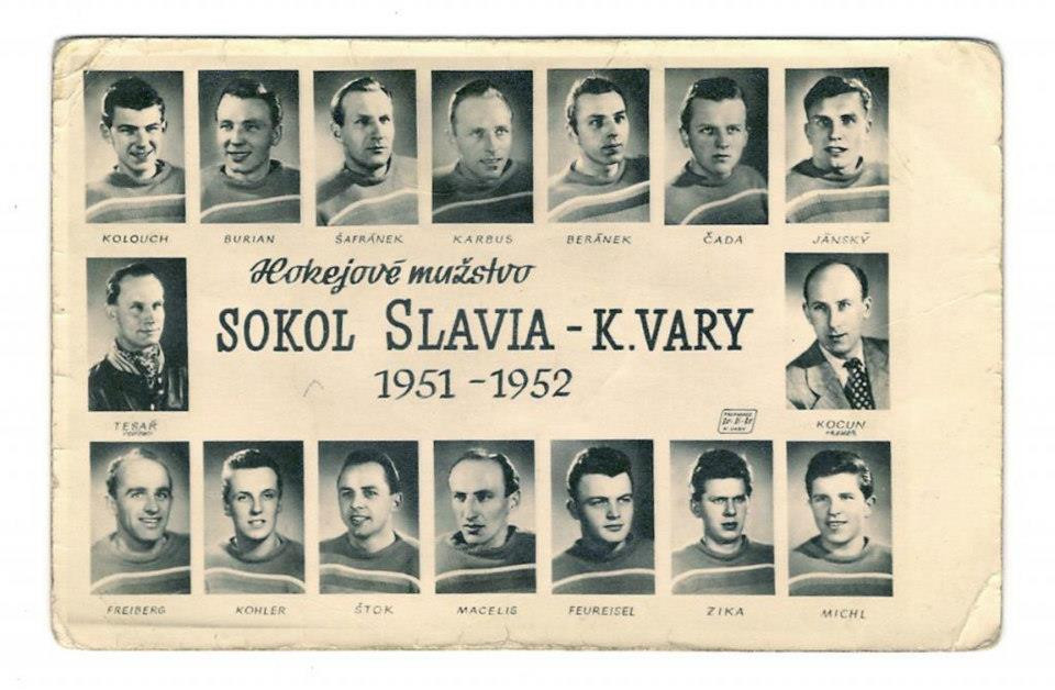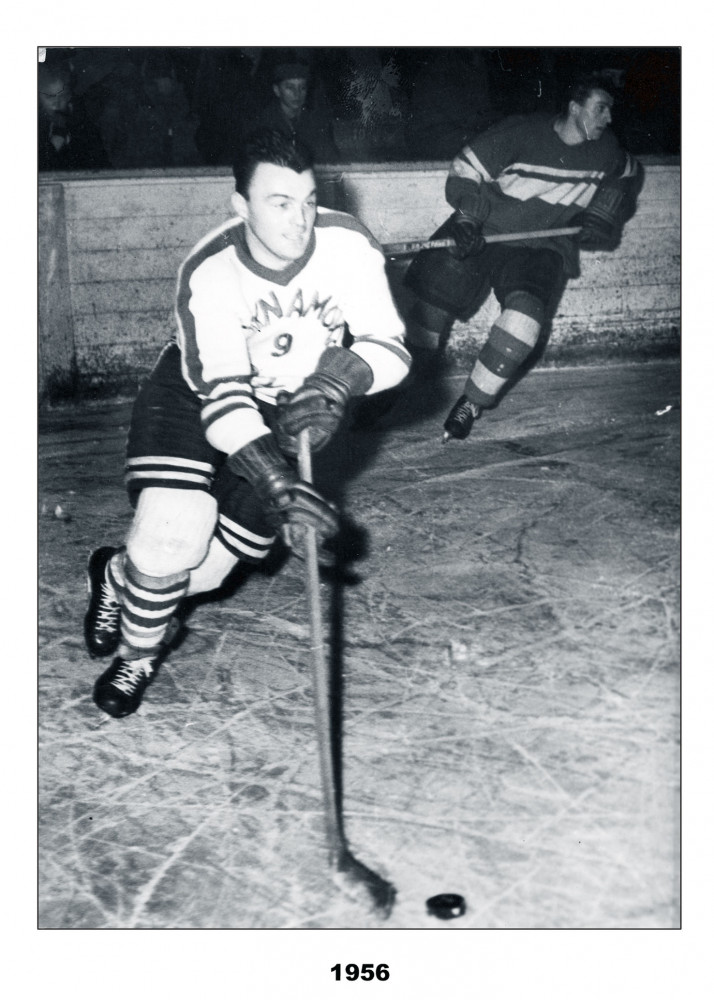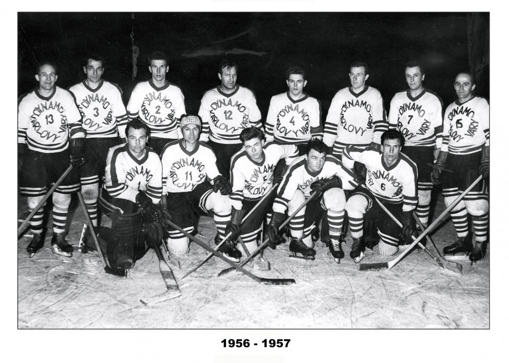 Na týmové fotografii ze sezony 1956-57, ve spodní řadě druhý zprava