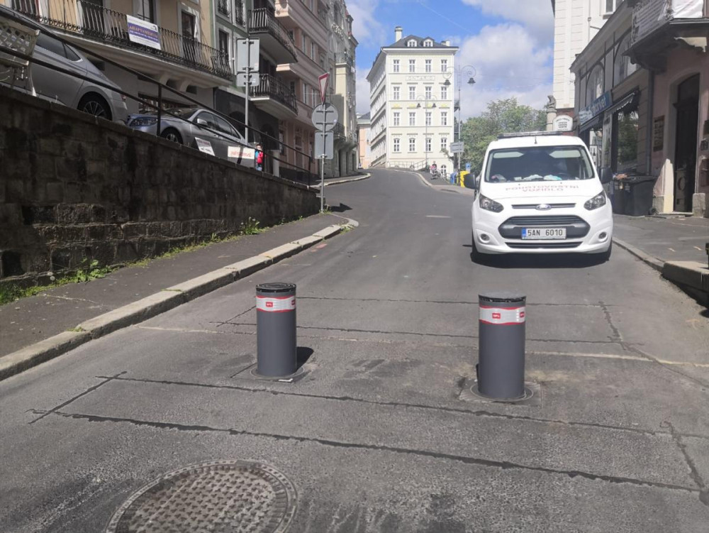 Výsuvné sloupky u lázeňské zóny se v Karlových Varech osvědčily