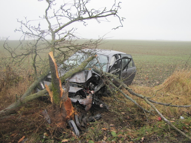 Při nehodě havarovala tři auta, jedno narazilo do stromu