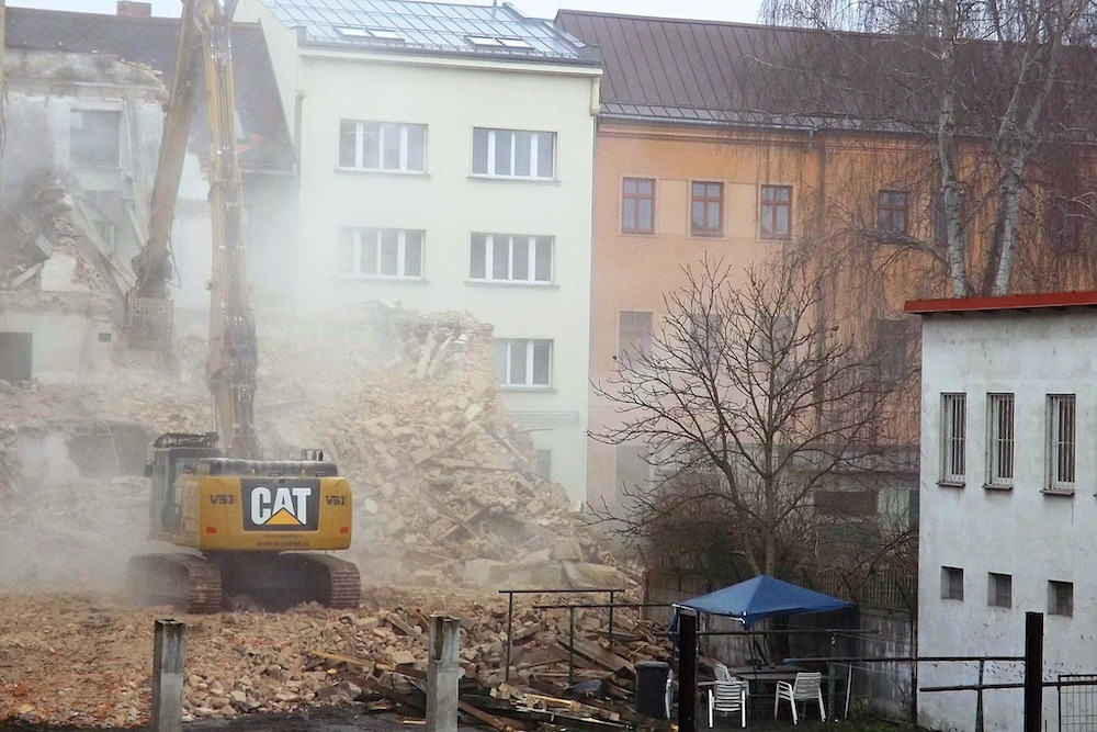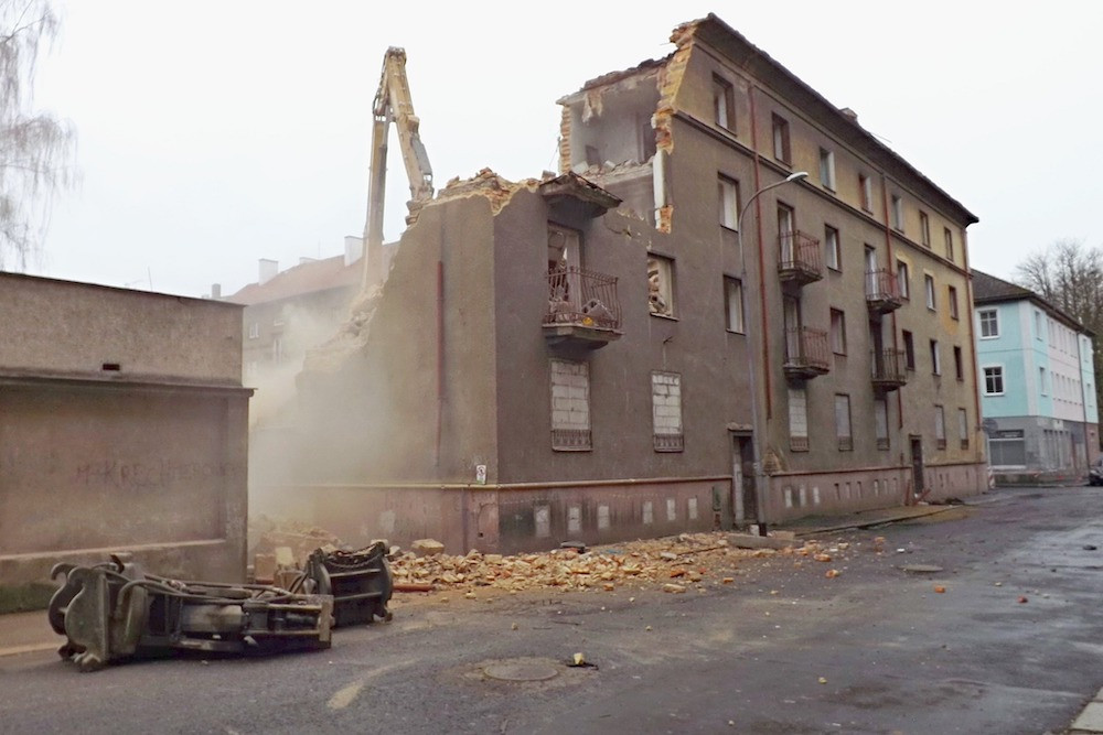 V Sokolově začali stavbaři bourat dům u autobusového nádraží. Bude tam parkoviště