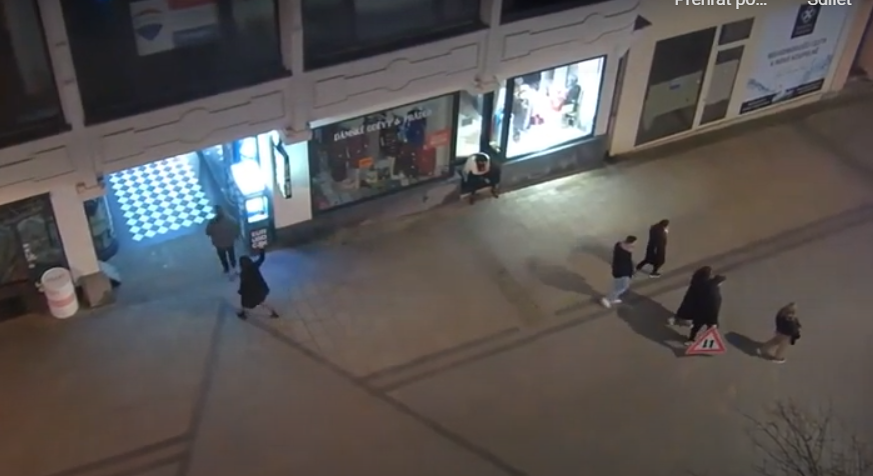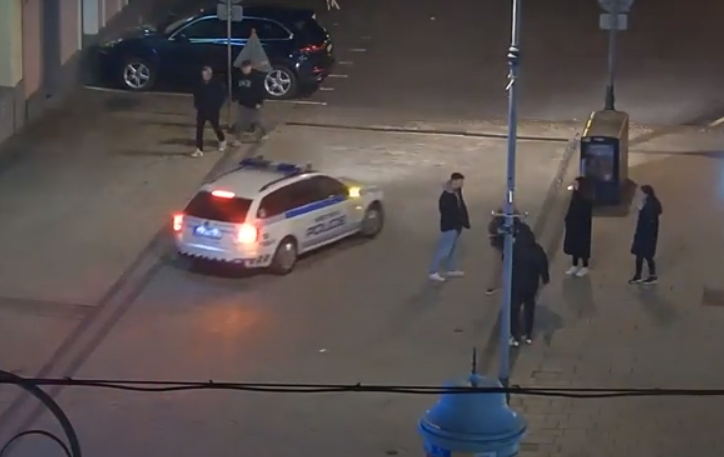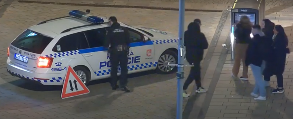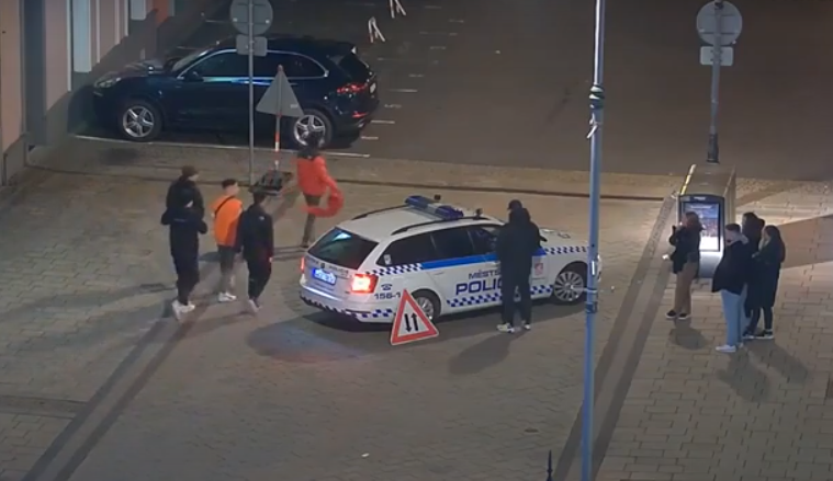 Rozjařená skupinka se fotila s ukradenou dopravní značkou přímo pod kamerou městské policie