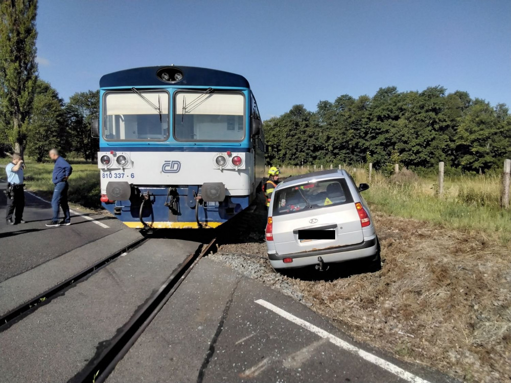 Vlak smetl na železničním přejezdu osobní automobil, posádka vyvázla jako zázrakem bez zranění