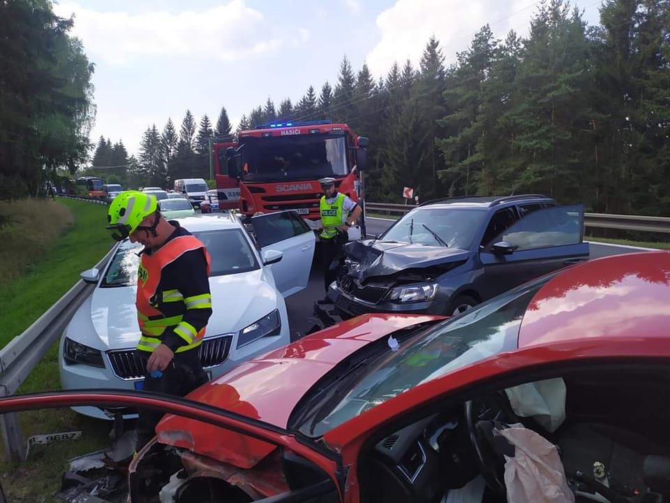 Při střetu čtyř automobilů na výjezdu z Karlových Varů se zranily dvě ženy