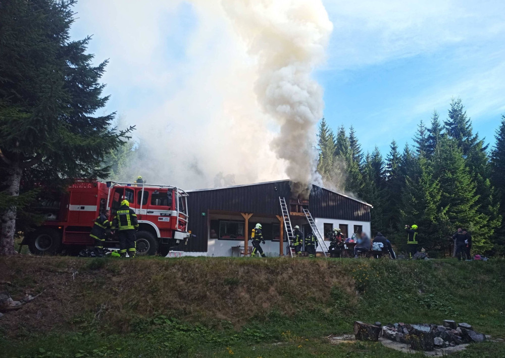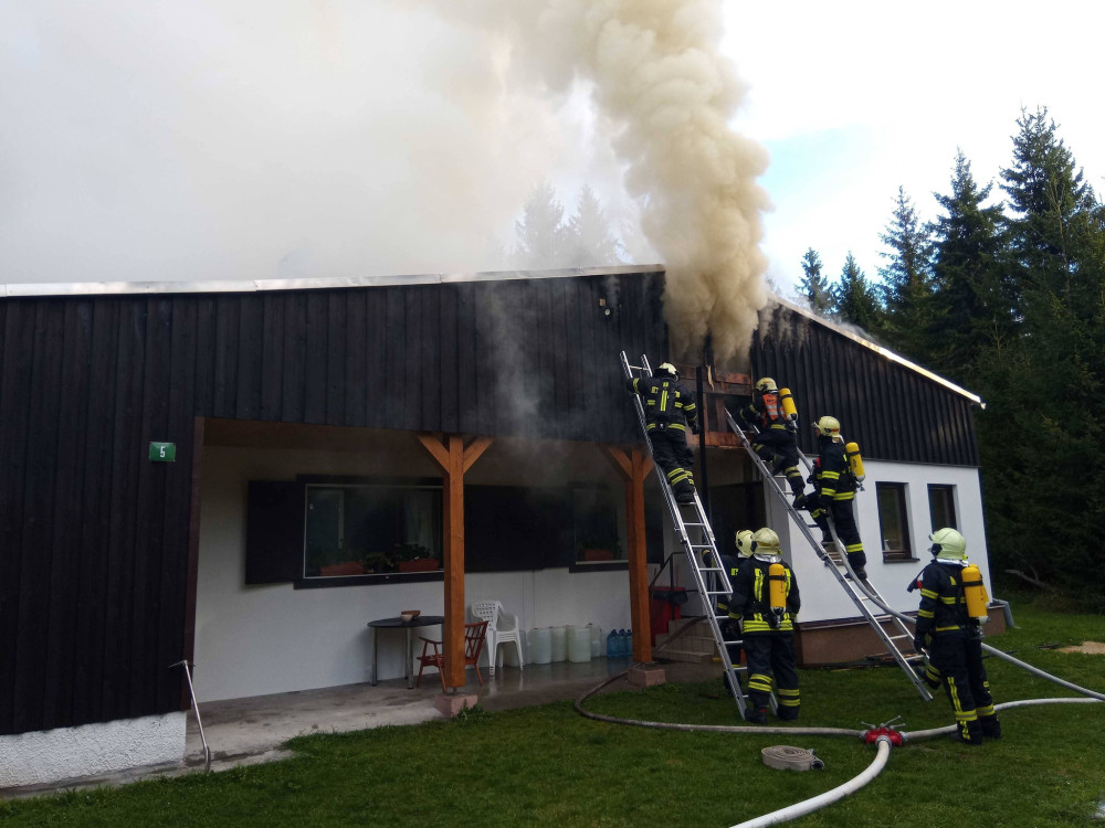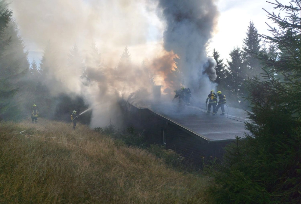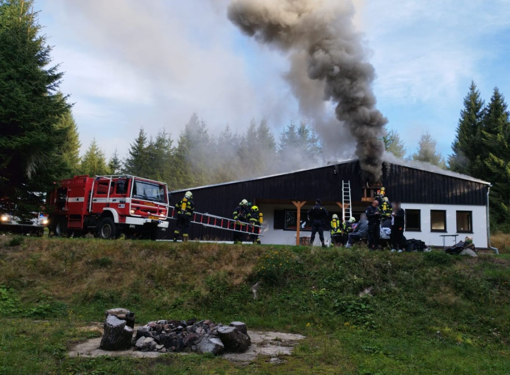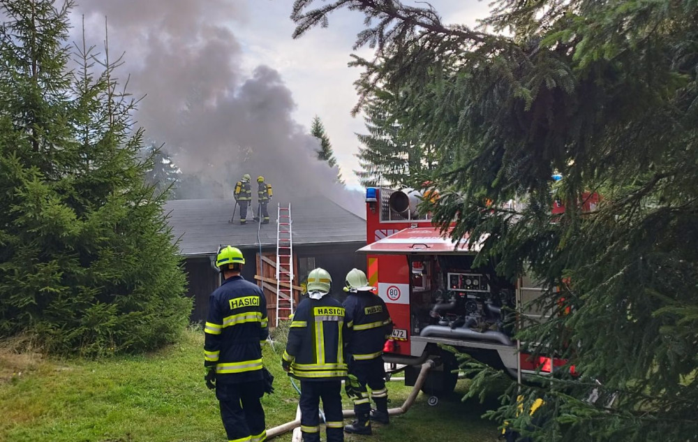 Požár chaty způsobil škodu za dva miliony korun, ubytovaná rodina stačila před ohněm uprchnout ven