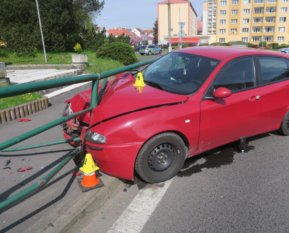 Po policejním PIT manévru se ujíždějící automobil v centru města doslova napíchl na zábradlí