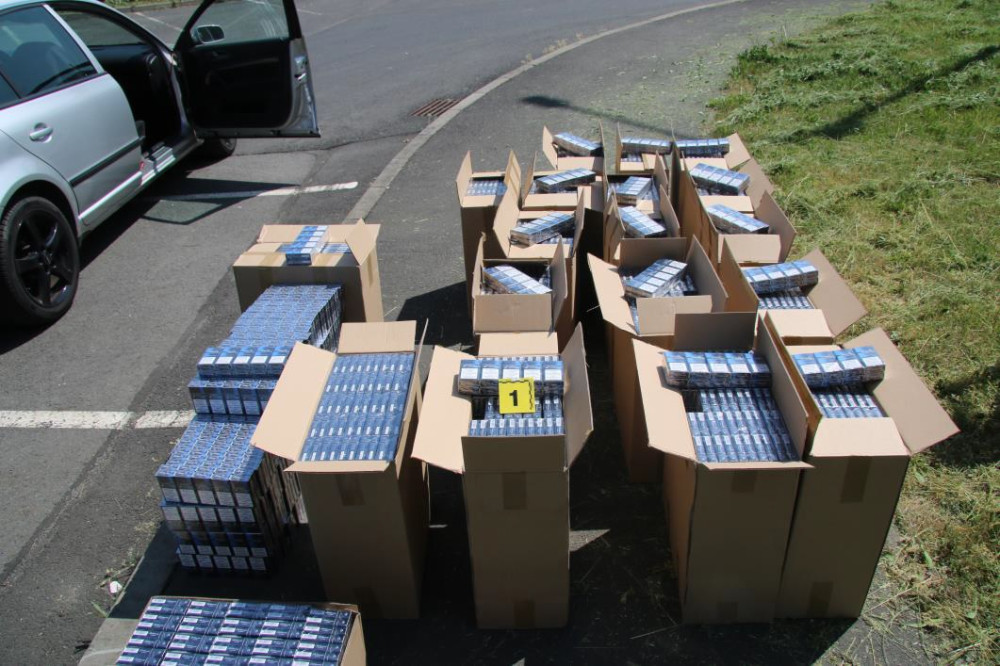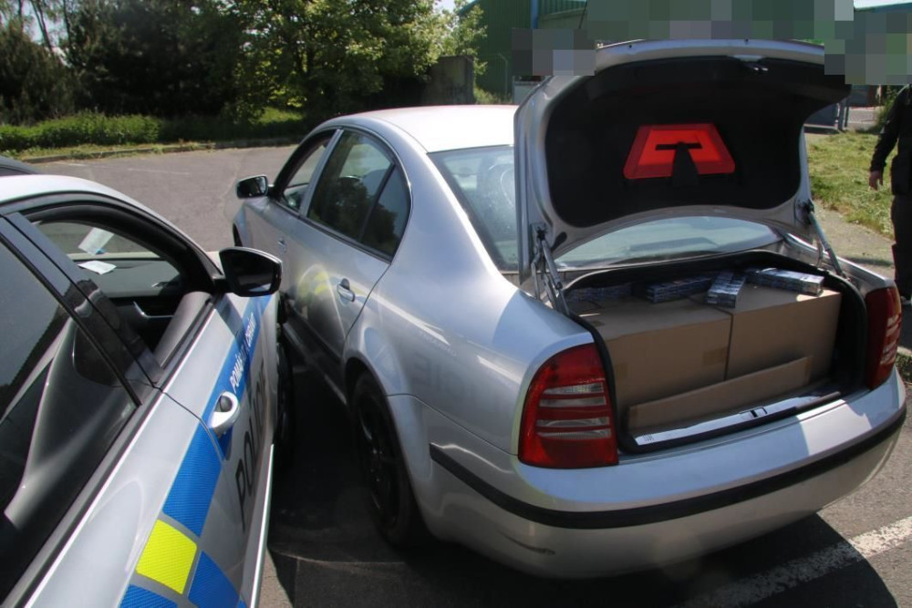 Policisté zastavili PIT manévrem zběsile ujíždějící automobil napěchovaný krabicemi nekolkovaných cigaret