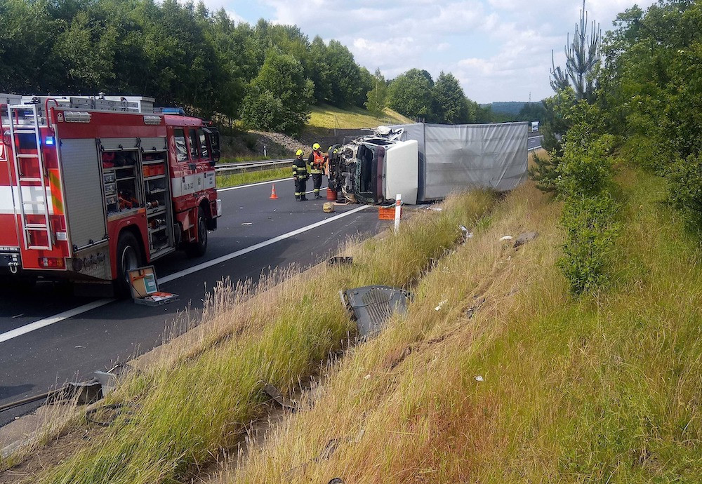 Nehoda uzavřela D6 na Sokolovsku na několik hodin, srazila se dvě nákladní auta