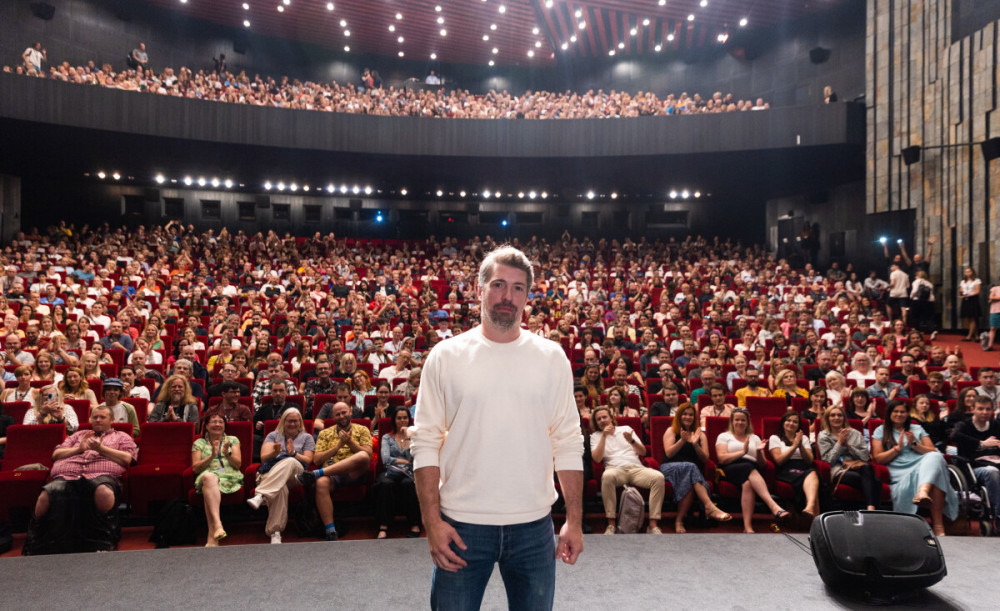 Francouzský režisér Thomas Cailley včera osobně na festivalu v Karlových Varech ve Velkém sále Thermalu uvedl svůj nový film Říše zvířat.