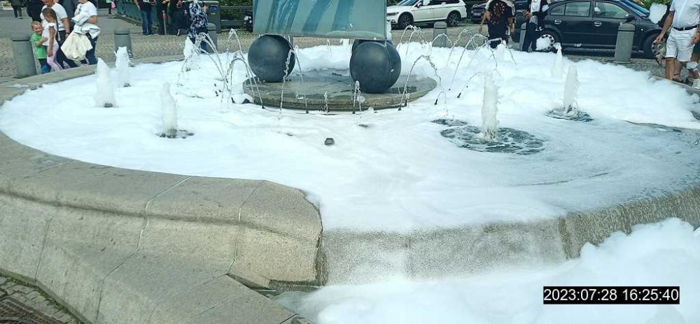 Do fontány před hlavní poštou někdo nalil saponát. Místo vody byla plná pěny