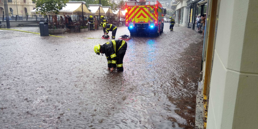 Silné bouřky zasáhly západní Čechy, ulice se ocitly pod vodou. Někde vytrhala i dlažební kostky