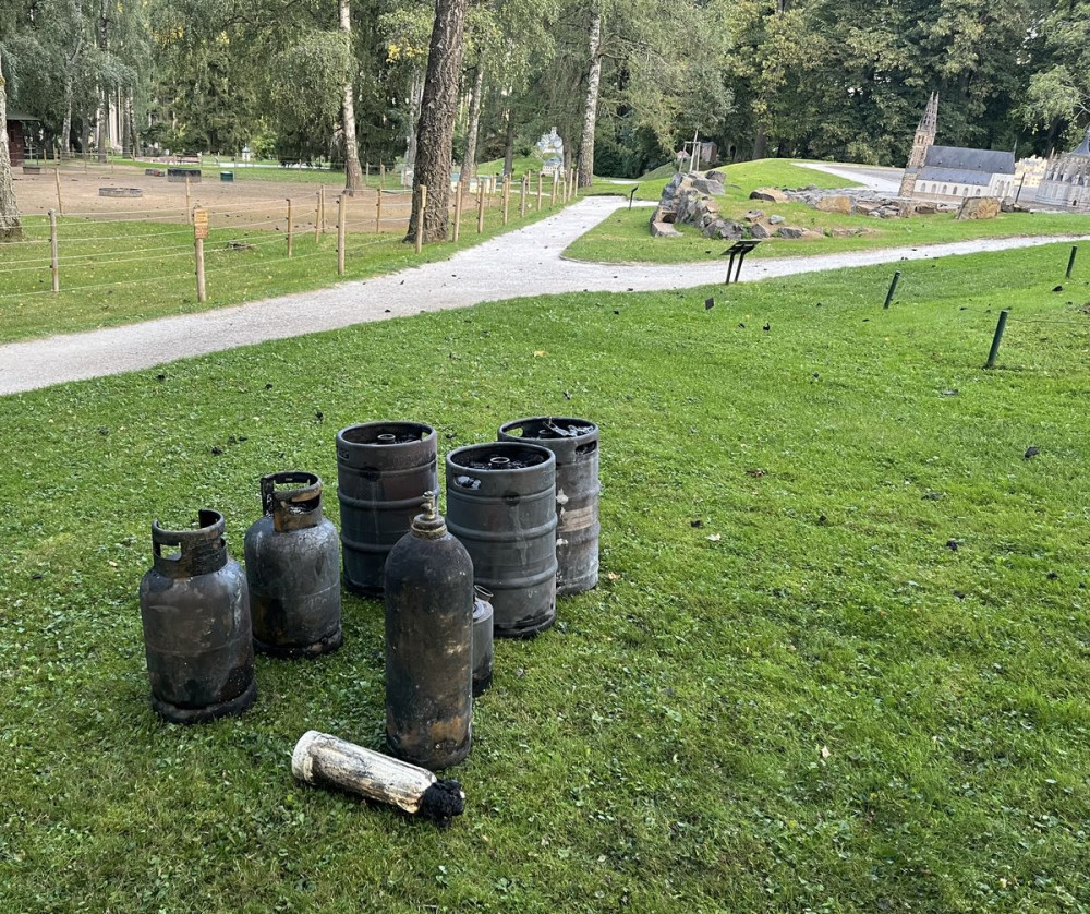 V parku miniatur v Mariánských Lázních shořel stánek, oheň poškodil model Karlštejna