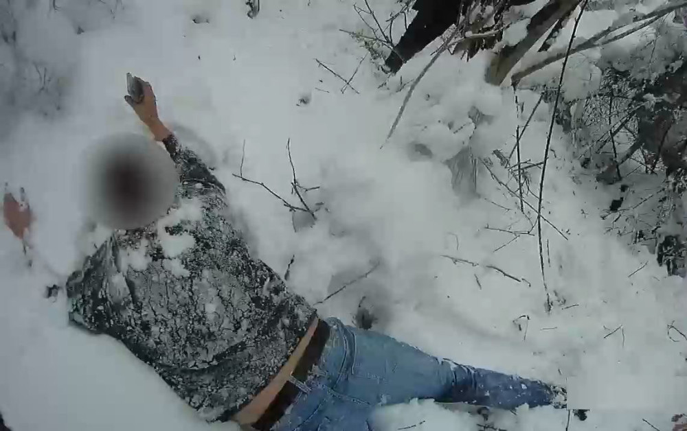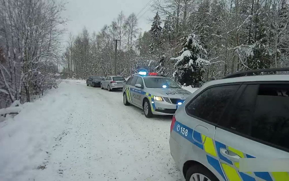 VIDEO: Muže prchajícího před policisty zastavil až varovný výstřel. Potom si lehl do závěje uprostřed lesa