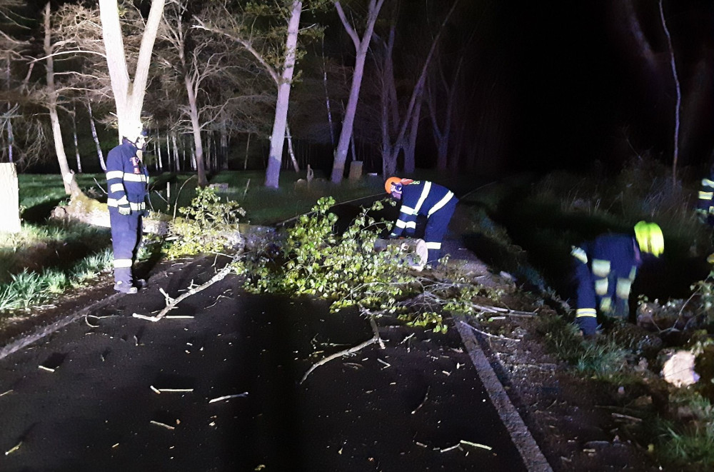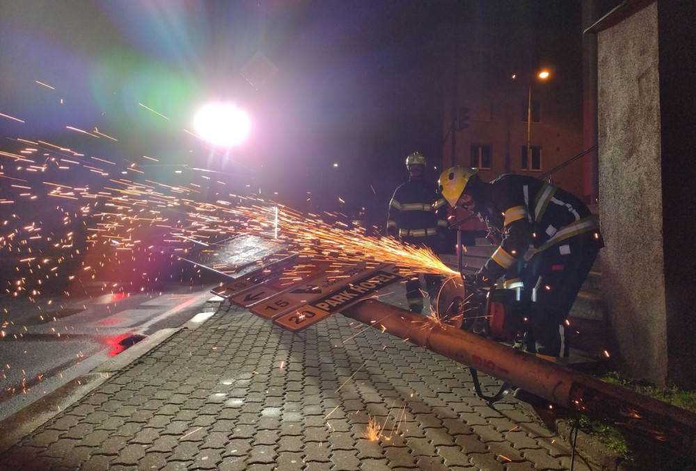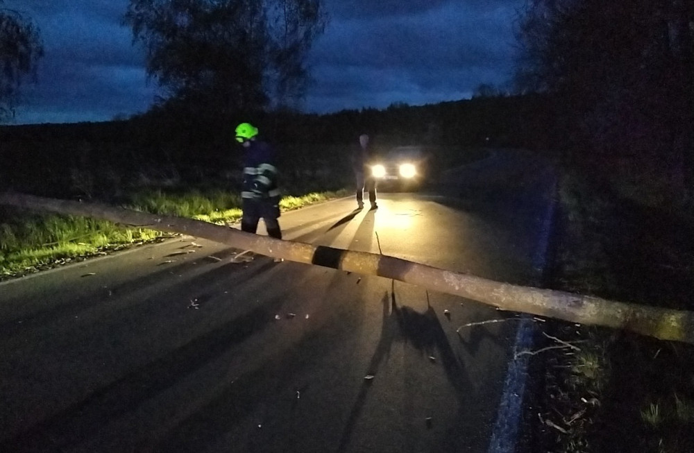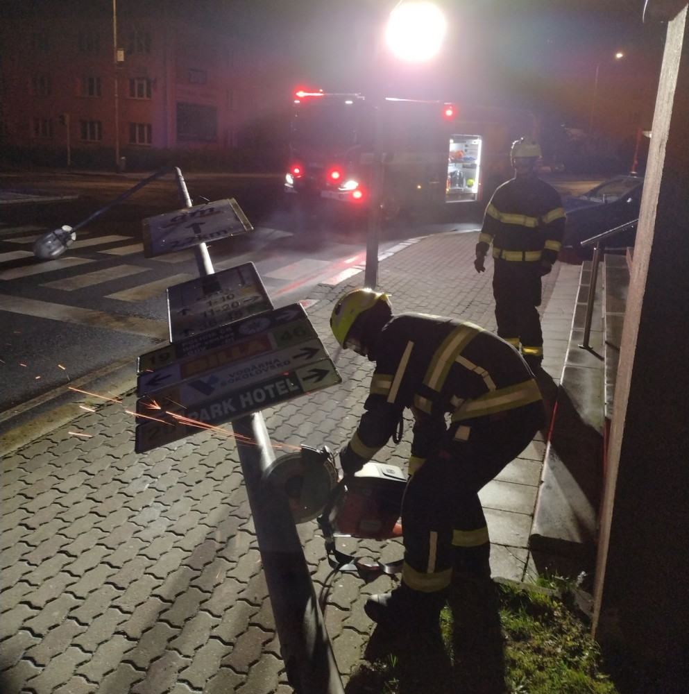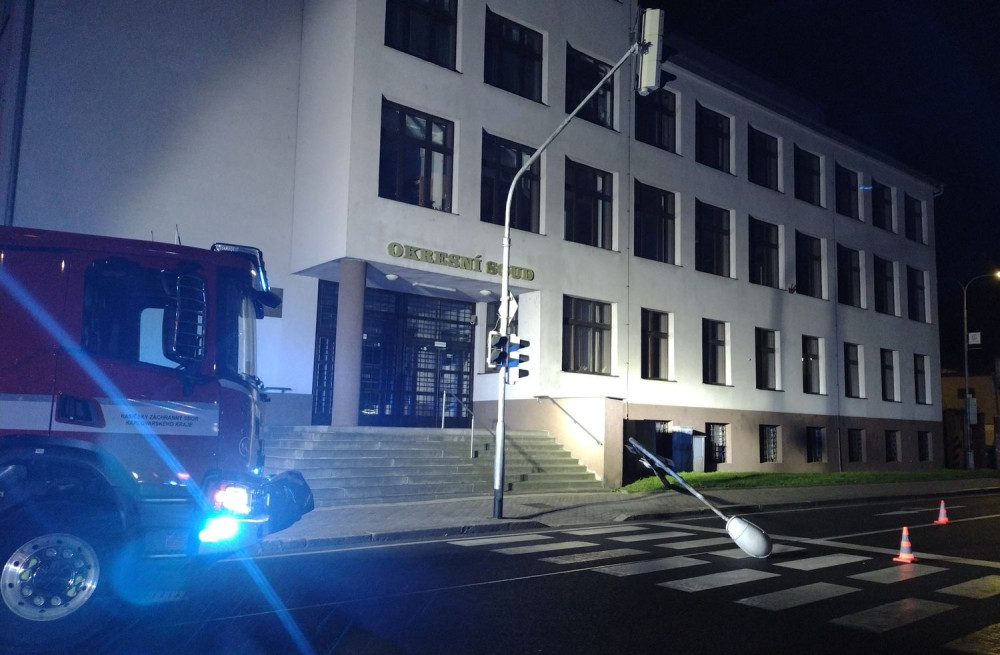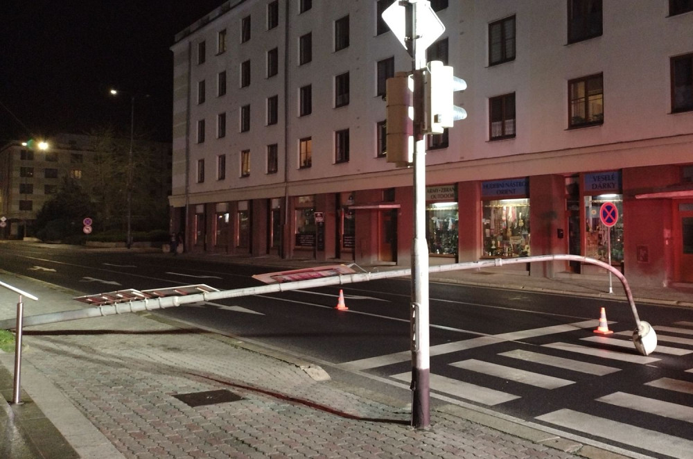 V centru Sokolova nápory větru nevydržel sloup veřejného osvětlení a poroučel se k zemi přímo přes ulici