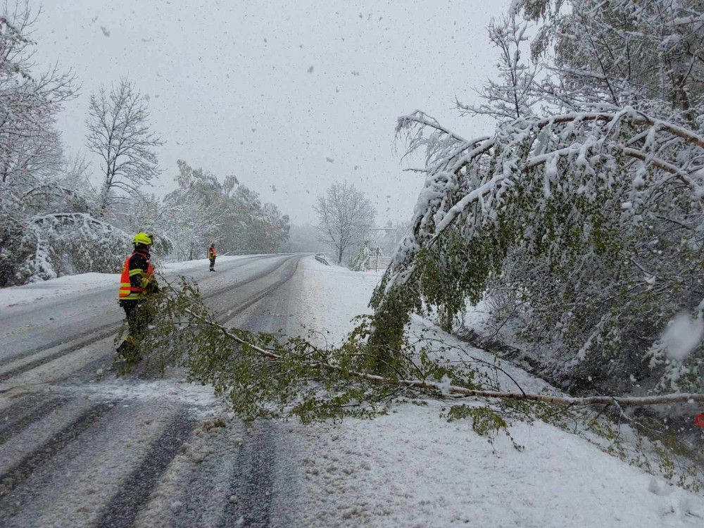 V Karlovarském kraji sněžilo, silnice klouzaly a stromy uzavřely některé tratě