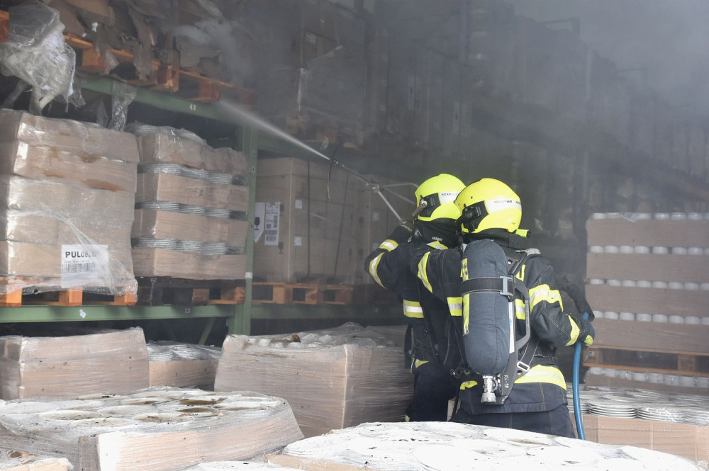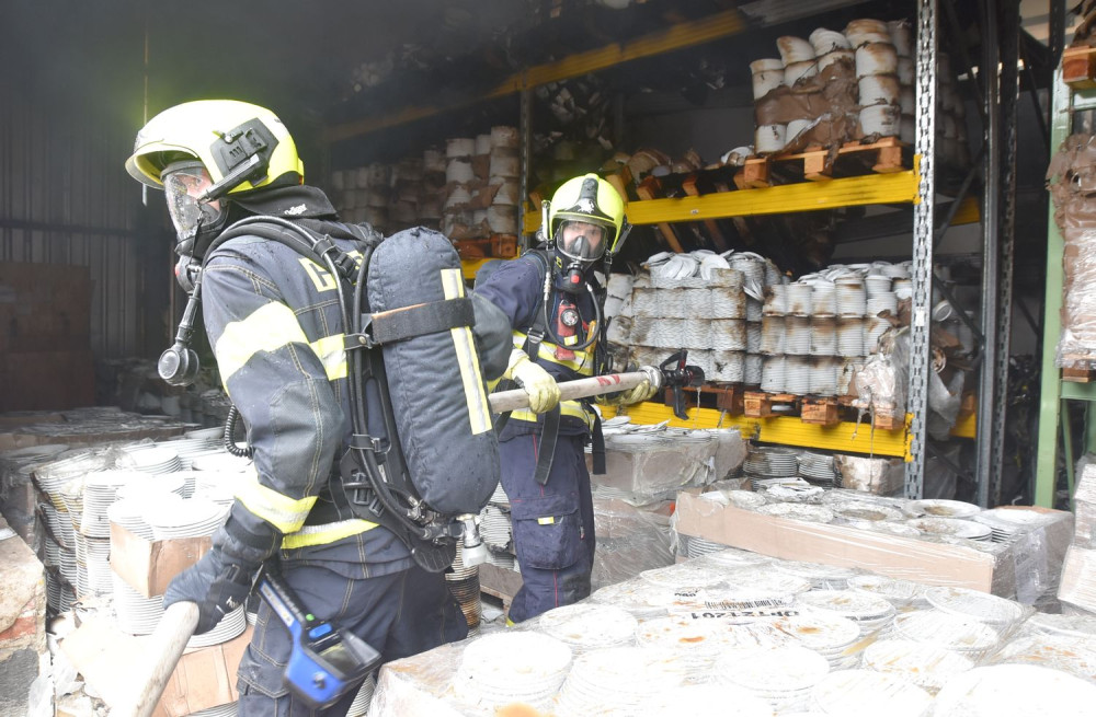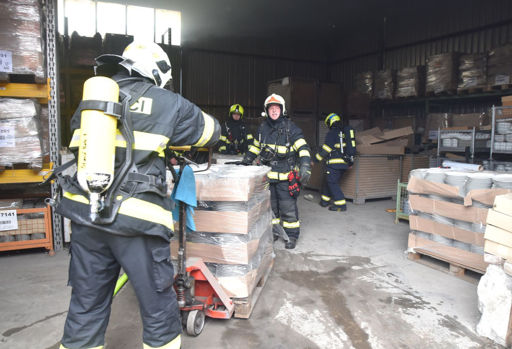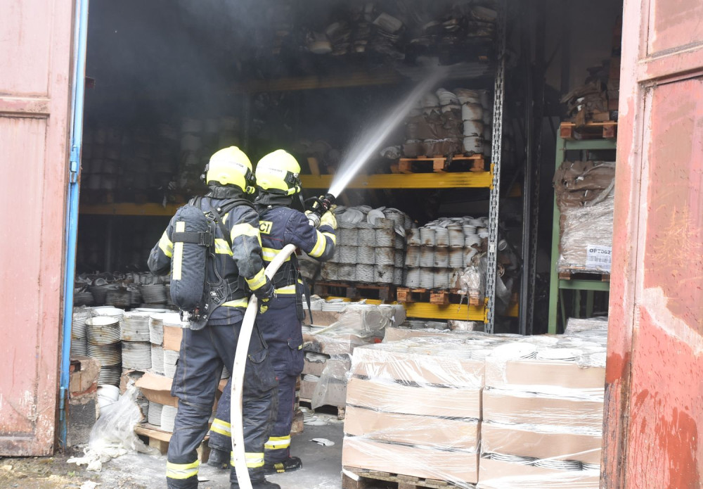 Hasiči likvidovali tři hodiny požár v objektu karlovarské porcelánky. Na místě zasahovalo 12 jednotek