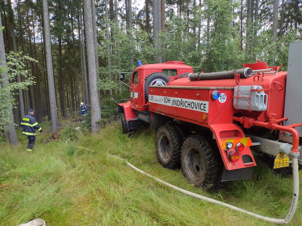 Požár lesa na Sokolovsku. Nejblíž k ohni se dostala přes šedesát let stará Praga V3S