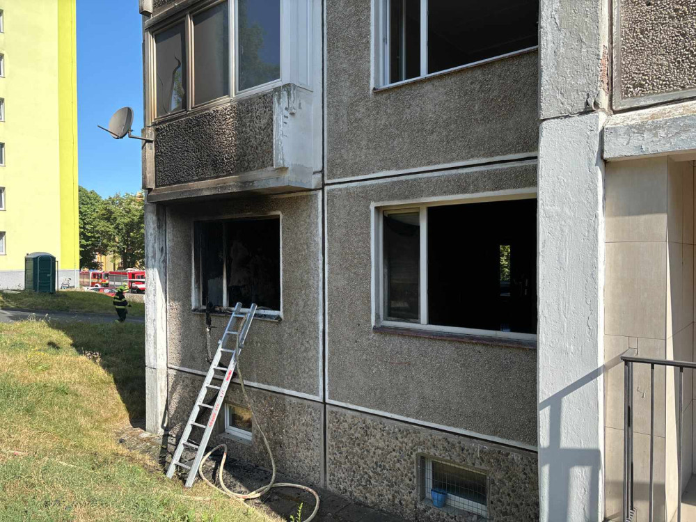 V Ostrově hořel panelový dům, hasiči z plamenů evakuovali 15 lidí