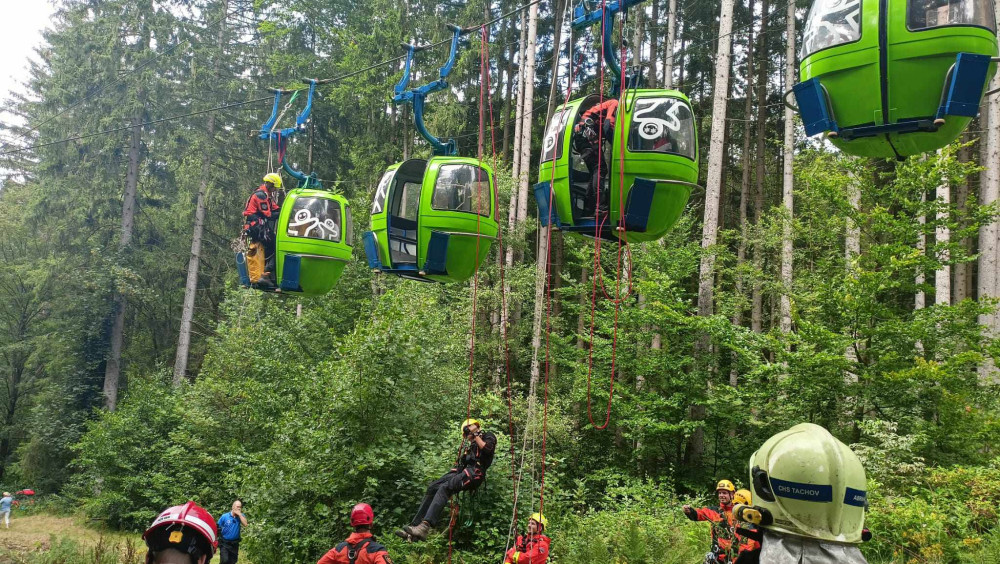 Lanovka v Mariánských Lázních se zastavila. Lidem na zem pomohli hasiči