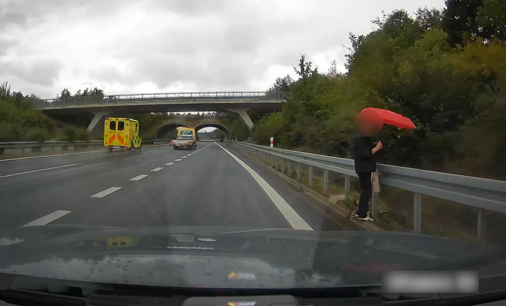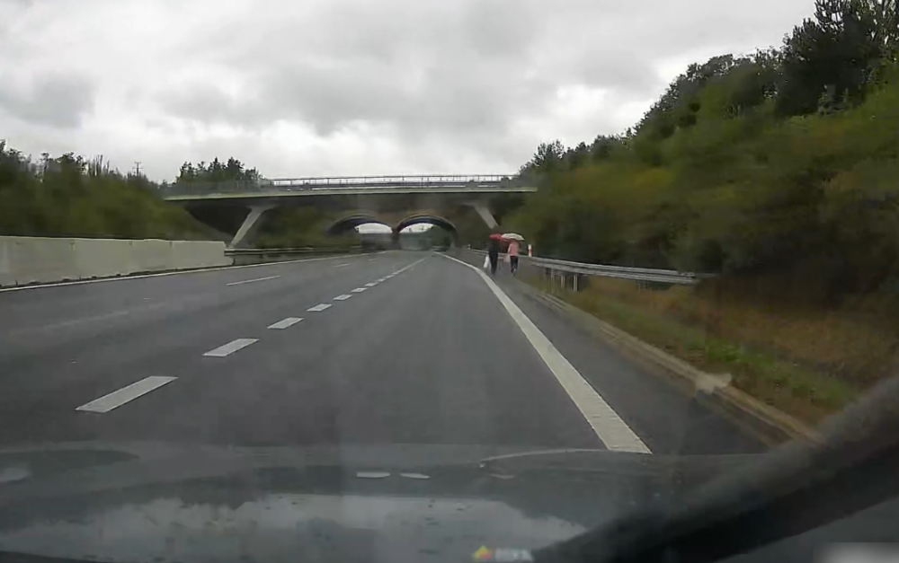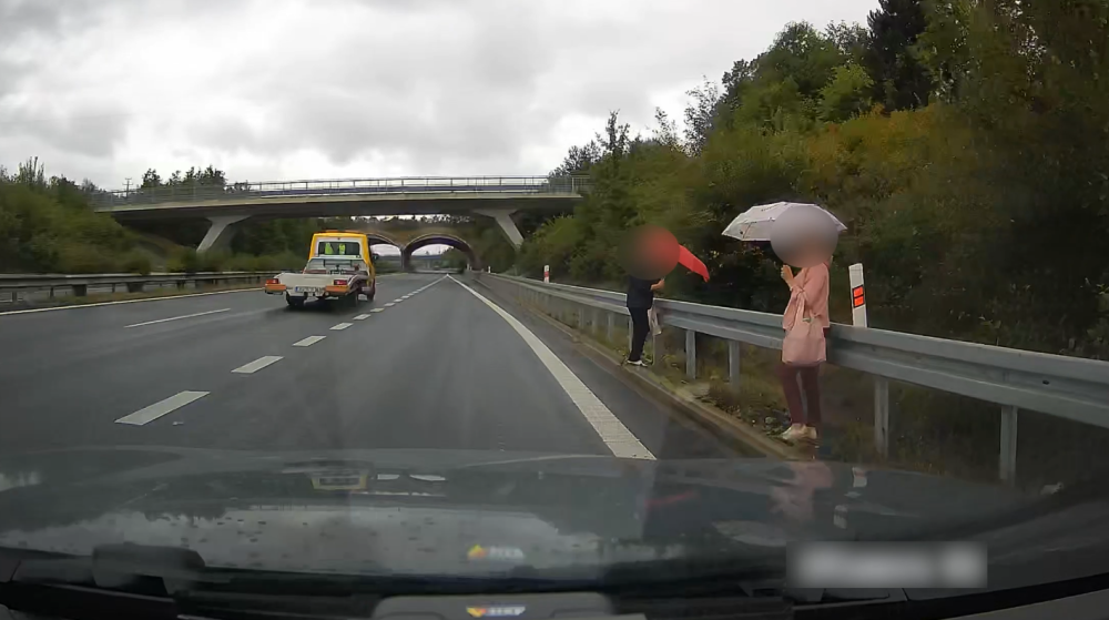 VIDEO: Dvě ženy si to v dešti vykračovaly po dálnici D6, měly obrovské štěstí, že je nesmetlo auto