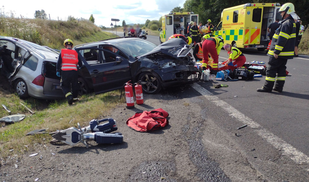 Jeden mrtvý a čtyři vážně zranění. Vážná nehoda uzavřela silnici z Ostrova na Hroznětín