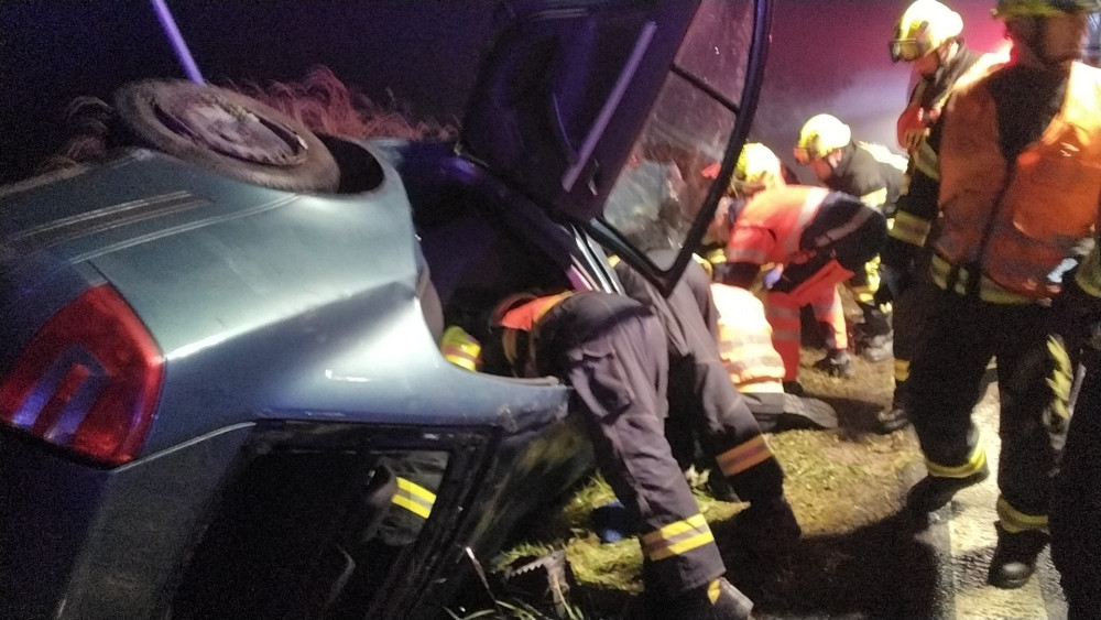 Vážná nehoda u Bochova. Řidič zůstal v převráceném autě zaklíněný