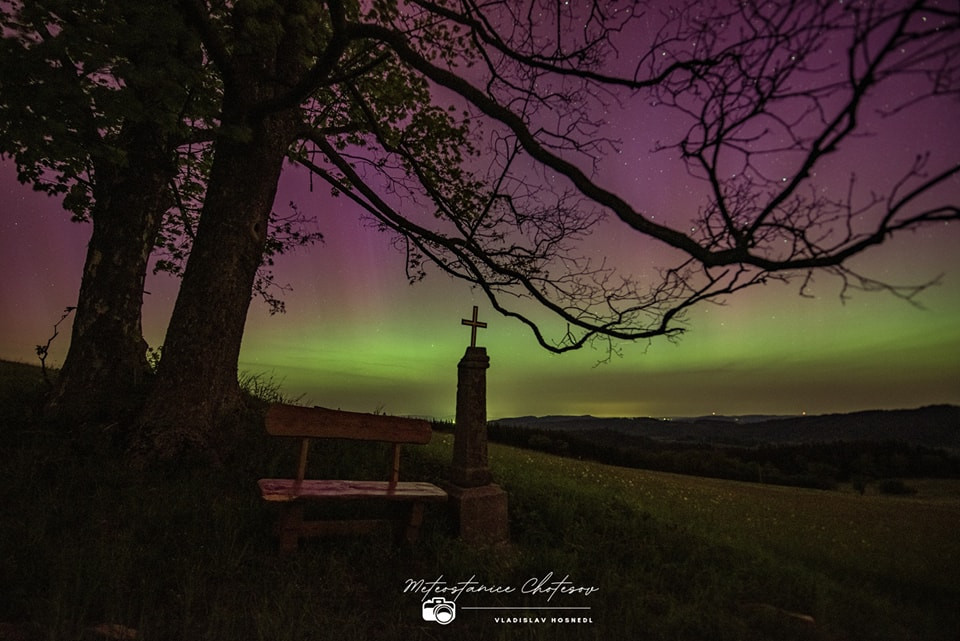 Polární záře z Pošumaví objektivem Vladislava Hosnedla z Meteostanice Chotěšov