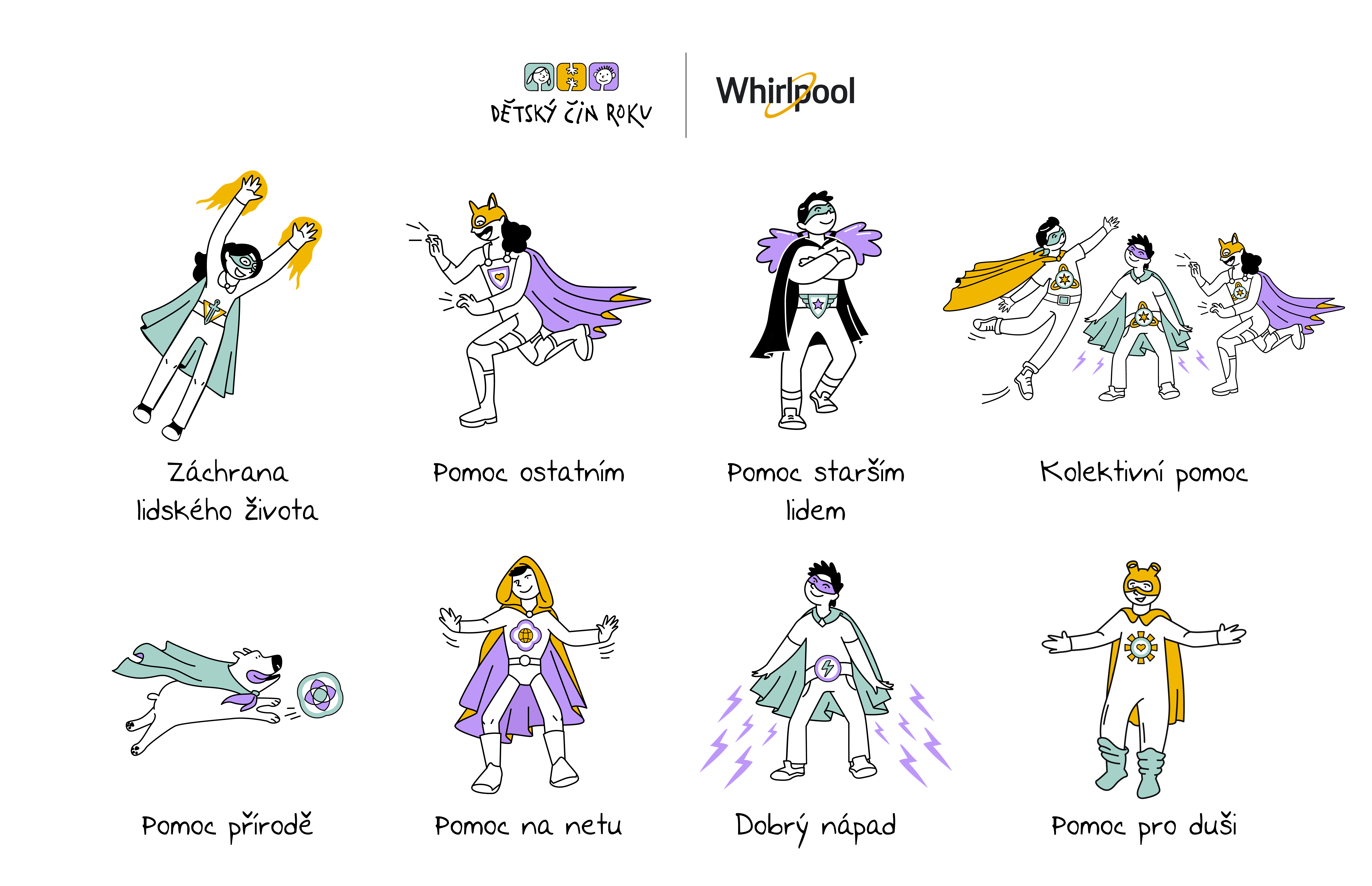 „Věříme, že každá forma pomoci má smysl. Právě proto jsme se rozhodli rozšířit projekt o kategorii Pomoc pro duši. Analýza výsledků výzkumu s reálnými příběhy z předchozích let nám ukázala, že děti vnímají jako zásadní nejen záchranu života v krizové situaci, ale i psychickou oporu, která dokáže život zachránit v tichosti. Chceme, aby i takováto pomoc dostala svou pozornost a ocenění,“ říká Jan Krejčíř, marketingový ředitel značky Whirlpool pro Českou republiku a Slovensko.