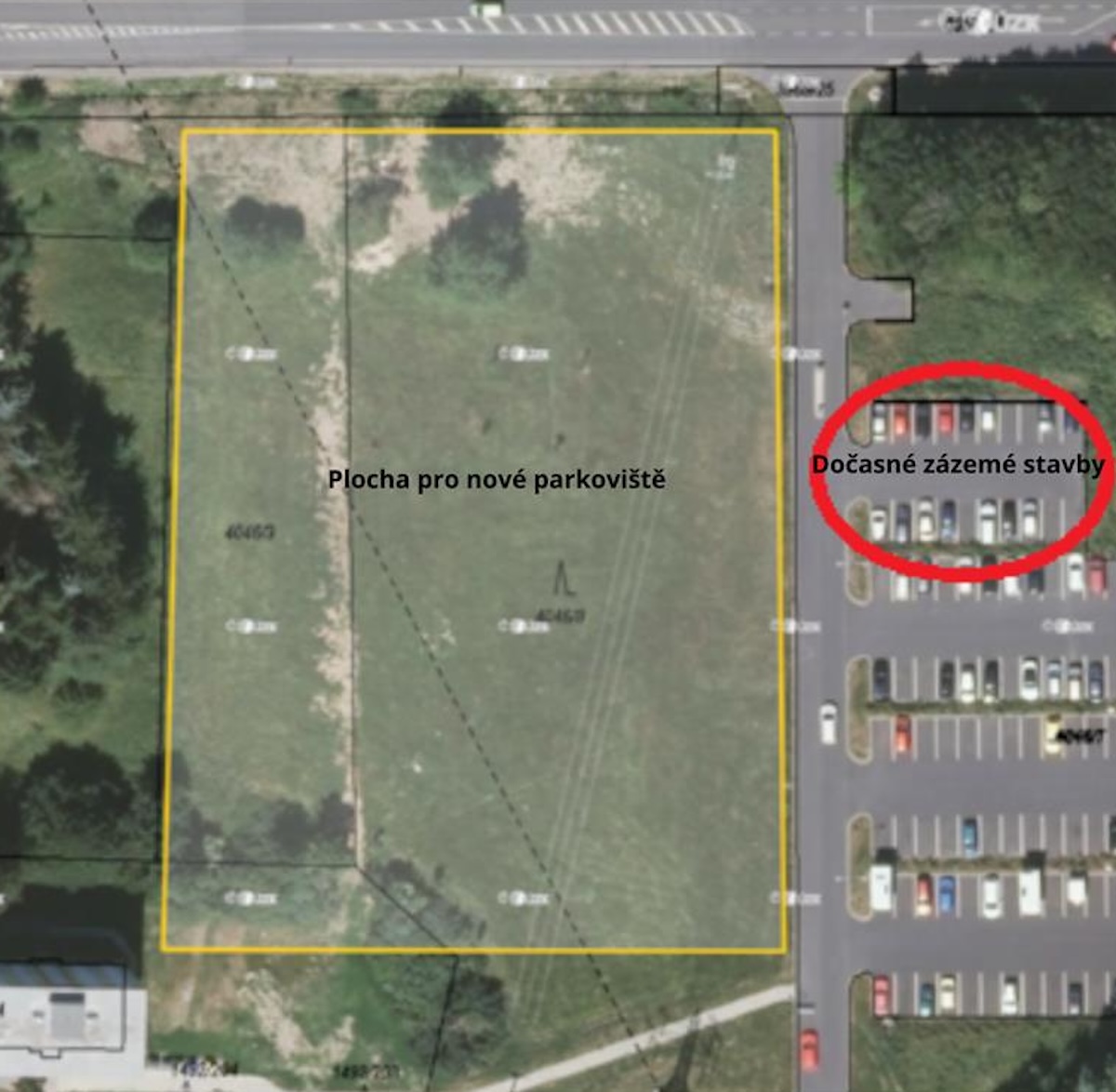 Stavební práce částečně zasáhnou do stávající parkovací plochy. Její spodní část směrem k ulici K. H. Borovského bude po dobu výstavby sloužit jako zázemí stavby a sklad materiálu. Zbývající část parkoviště však zůstane v provozu, i když s omezením.
