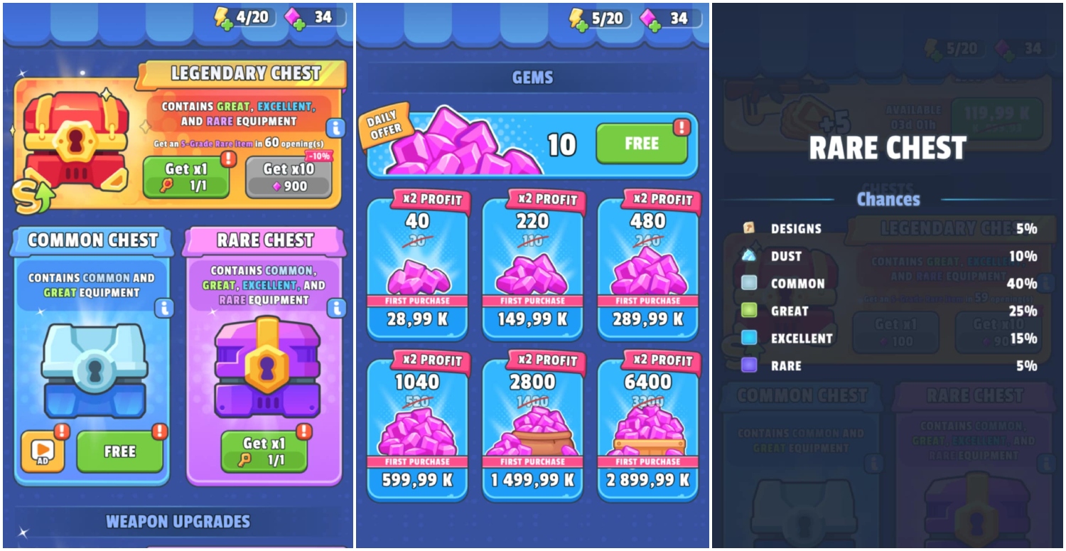 Tajemné truhličky se otevírají například za speciální diamanty, které lze získat z hraní. Tento postup je ale poměrně pomalý a tak si hráči mohou tuto herní měnu koupit. To už stojí reálné peníze. Samotná šance na vzácný předmět je ale v jednotkách procent. Tyto obrázky jsou z mobilní hry TSD - Tower Destiny Survive, kterou si už stálo přes 10 milionů uživatelů a je označená jako vhodná pro děti od sedmi let. Podobných her jsou stovky.Bedýnky s překvapením navíc bývají barevné, svítí nebo blikají a svým provedením často připomínají výherní automaty. Podle poslední Zprávy o hazardním hraní, kterou vydalo Národní monitorovací středisko pro drogy a závislosti, má zkušenost s hazardním hraním téměř 16 procent dospívajících a dvě procenta hrají pravidelně, přestože by k hazardnímu hraní neměli mít přístup. Problém je o to závažnější, že více než 53 procent trhu s hazardními hrami aktuálně tvoří online hry, které kvůli dostupnosti mohou představovat vyšší riziko než klasické hry v kamenných provozovnách.