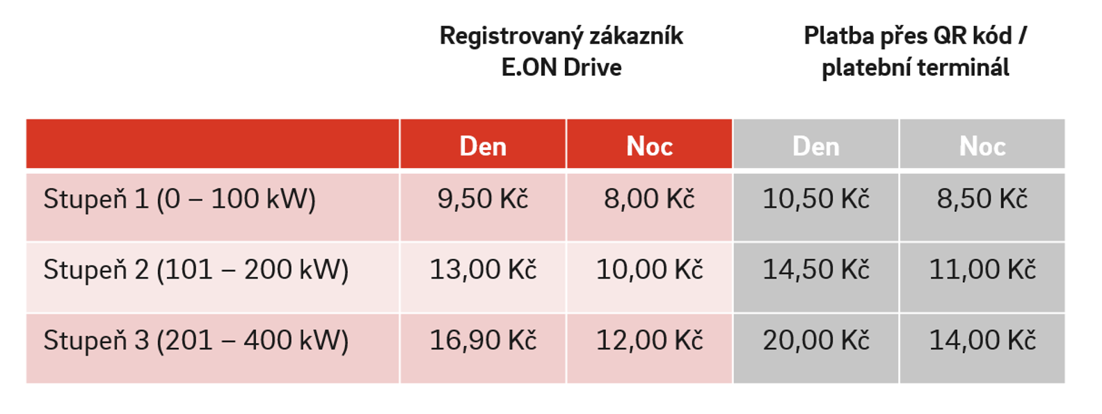 Zákazníky E.ON Drive čeká od 1. dubna zásadní změna v placení za dobíjení v české síti. Dosavadní složitější rozdělení cen podle typu stanic (AC, DC, HPC) nahradí přehlednější systém založený čistě na jejich výkonu. Nově se tak budou orientovat podle tří jasných kategorií (0–100 kW, 101–200 kW a nad 200 kW) a navíc získají možnost výrazně ušetřit díky levnějšímu nočnímu dobíjení.